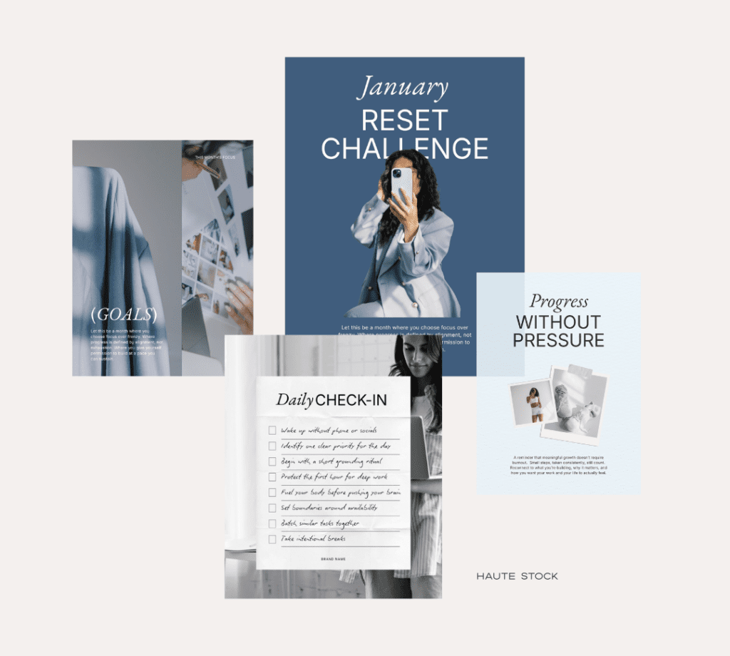 If you’re mapping out your 2026 content and looking for stylish ways to share your goals, intentions, or mindset shifts, these new and exclusive to Haute Stock Intentions and Momentum Canva Template Packs were designed for you.